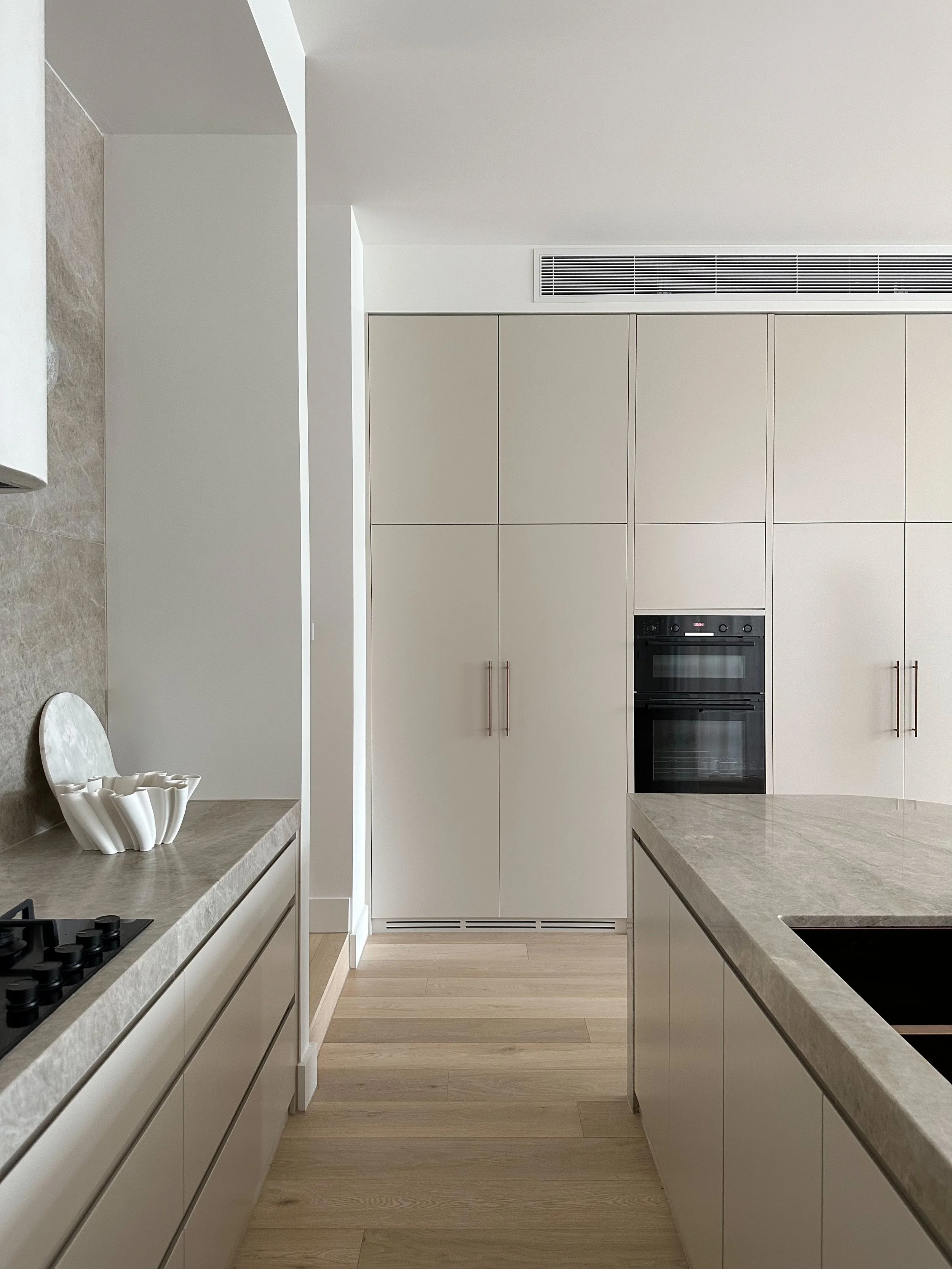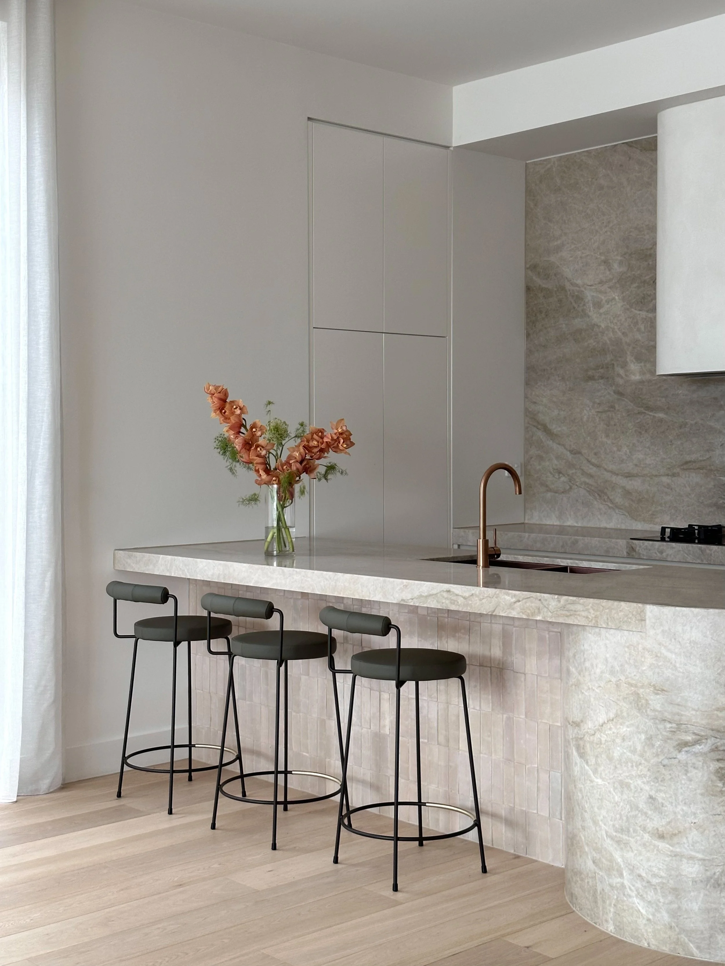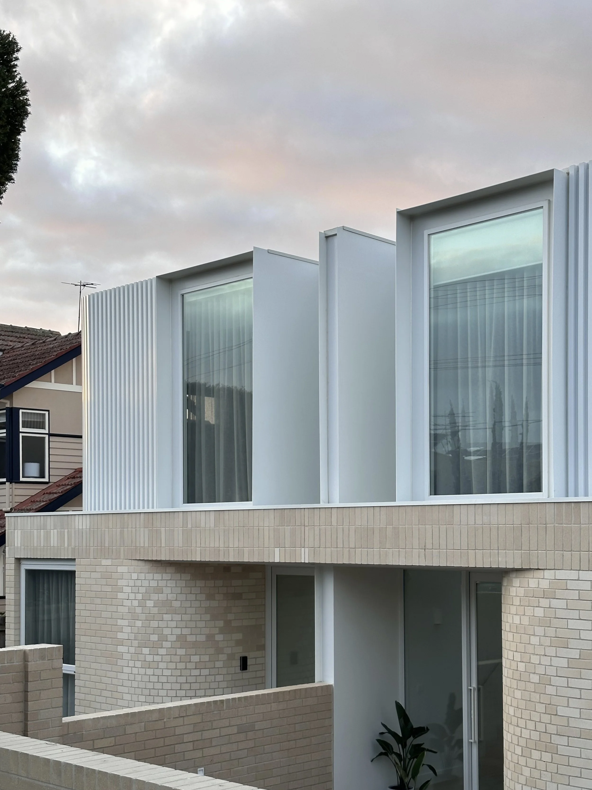 Located in Ivanhoe, this luxurious dual-occupancy development is a study in architectural symmetry and refined modern living. Engaged to complete the comprehensive interior design for both double-storey residences, our studio focused on creating a seamless flow of natural light and tactile warmth. By juxtaposing the structured footprint with sweeping interior curves, including walls, a sculptural fireplace, and kitchen island bench, we crafted a pair of homes that feel deeply organic and effortlessly sophisticated.